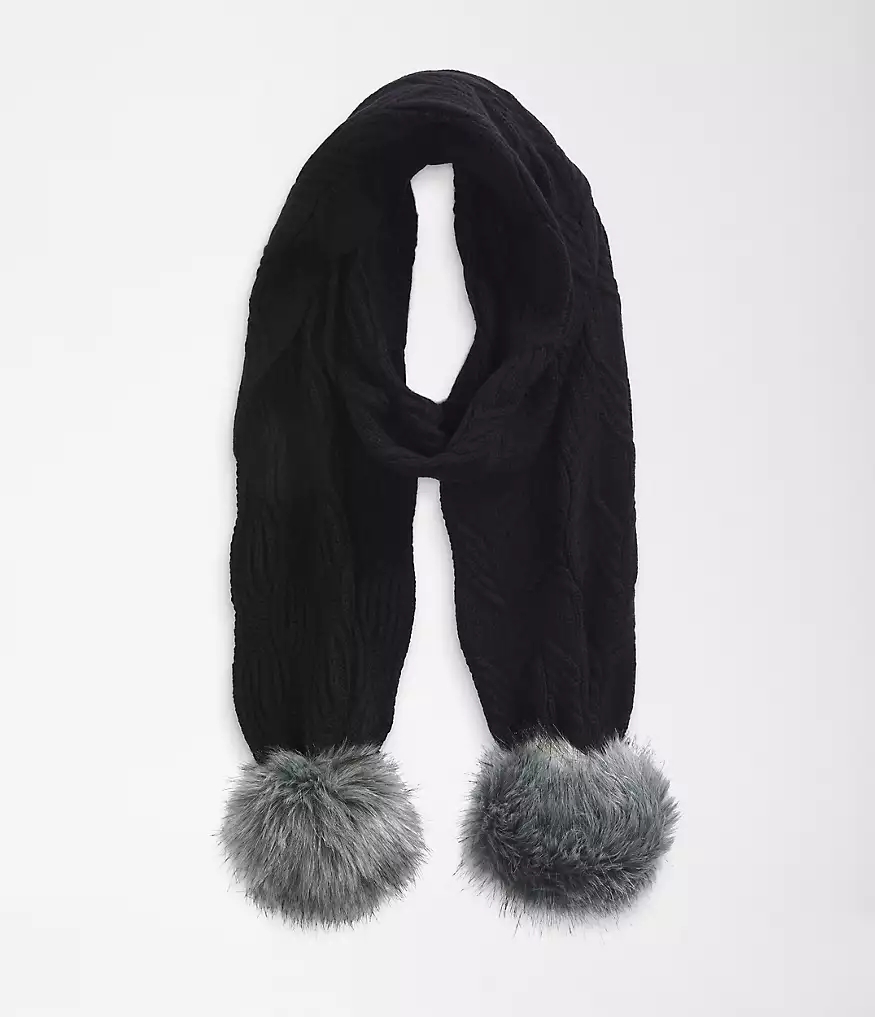 The Oh-Mega Fur Pom Scarf, with a cable-knit texture and oversized pom, brings the après ski party wherever you go.